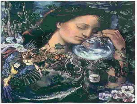 A Deusa está contida em tudo e vive na Terra, nos céus, no mar, em cada botão de flor, em cada pingo d’água e em cada grão de areia.